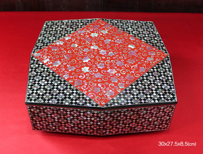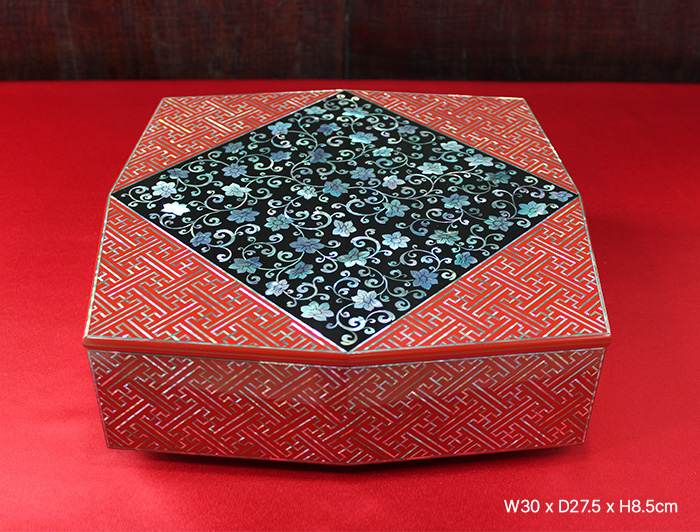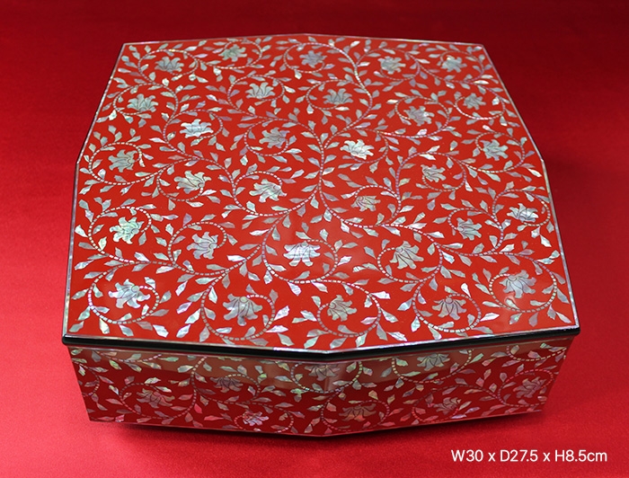 목단 넝쿨무늬 구절판 (주칠)
